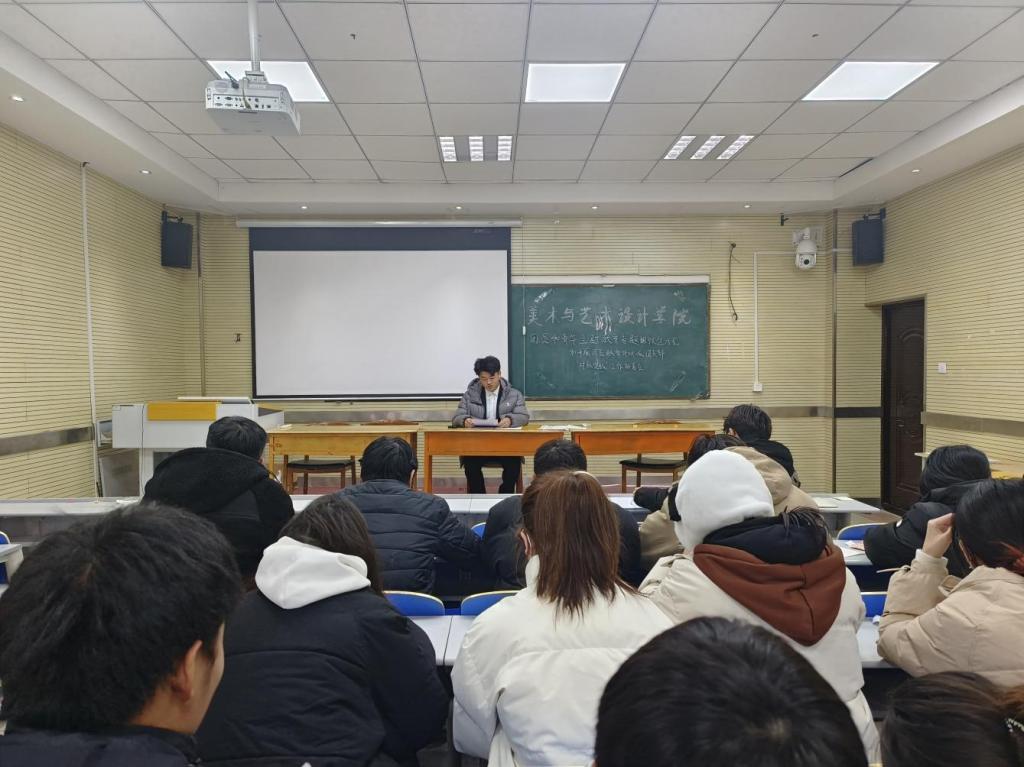 根据面向广大团员和青年开展学习贯彻习近平中国特色社会主义思想主题教育的总体部署,进一步完善我院团总支思想教育和教育评议工作,2023年12月27日,美术与艺术设计学院团总支于敏行楼201室召开“专题组织生活会、开展团员教育评议和团支部‘对标定级’”工作部署会,团总支副书记张洪福主持会议。