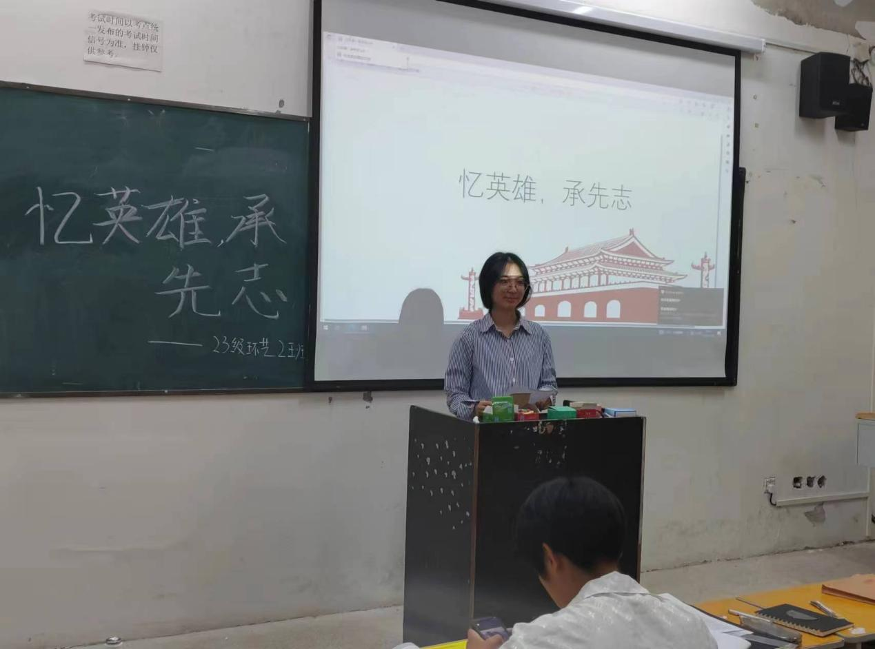 为缅怀革命先烈,学习革命精神,弘扬爱国主义,继承光荣传统,2024年4月11日美术与艺术设计学院2023级环艺本科二班在笃行楼504开展“亿英烈,承先志”主题活动。