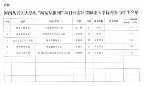为深入学习贯彻习近平总书记在同团中央新一届领导班子集体谈话时的重要讲话精神,引领青年学子返回家乡参与实践、服务家乡建设发展,我院2023级服装与服饰设计本科二班康梓宸同学积极响应号召,参与“向基层报到”实践活动,且被团省委认定为优秀参与学生。