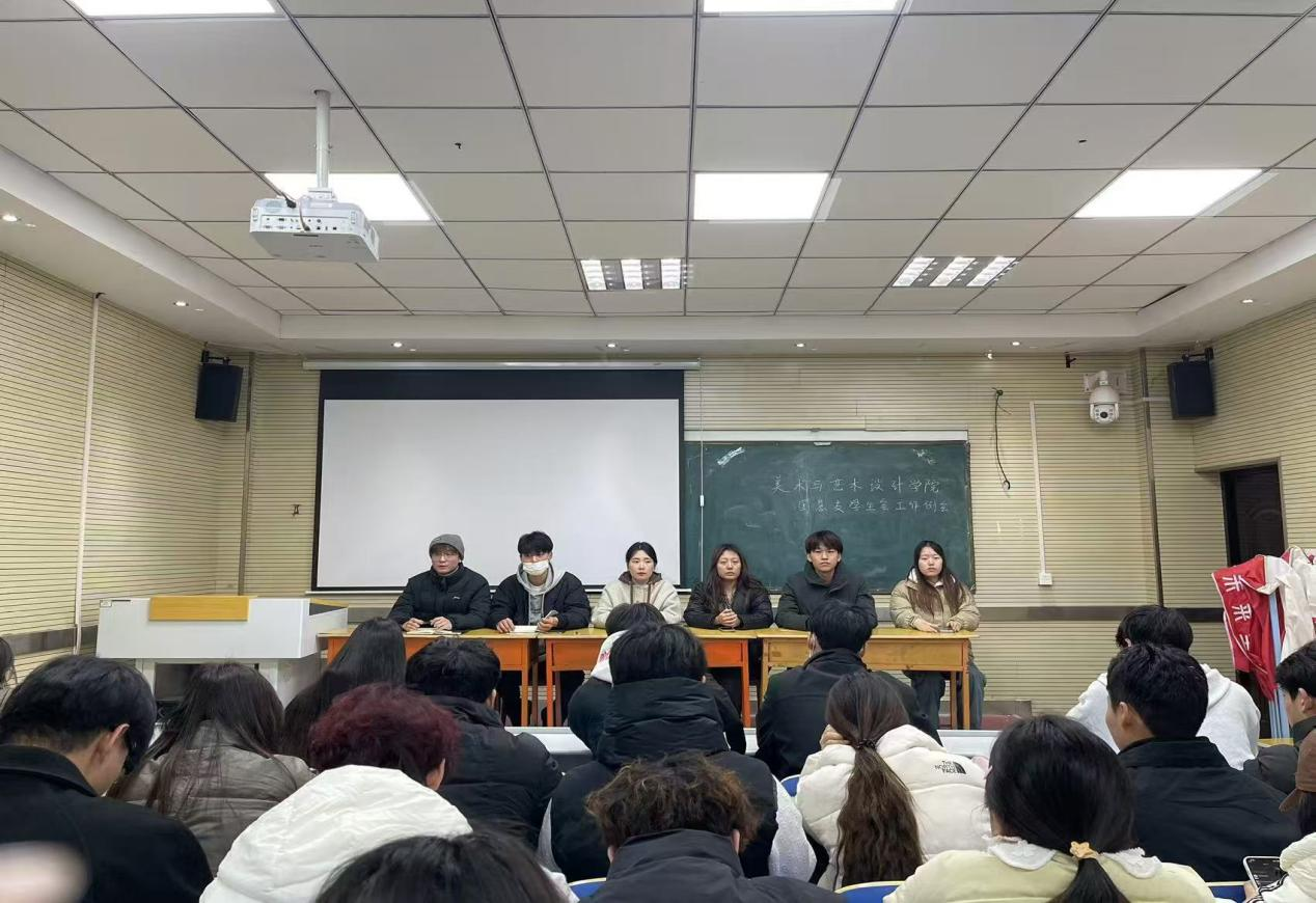12月2日,美术与艺术设计学院团总支、学生会于敏行楼201会议室召开工作会,团总支书记张冰、学管办主任邓晓晗出席,全体成员参会。
