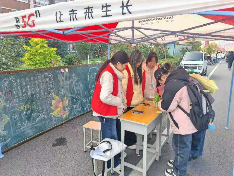 本次活动以多样化的形式展开,全方位提升校园文明风貌,为校园注入新的活力与生机。活动现场,志愿者和同学们共同将手写的爱护校园的标语与精心制作的宣传海报,张贴在校园的教学楼、食堂、宿舍等指定位置,配上真挚的文明校园倡议文字。展示文明用语、文明就餐、文明交往等规范。同学们热情高涨,拿起便签和笔,用心写下自己对校园的热爱和对文明的承诺。为传播文明校园理念贡献着自己的力量。