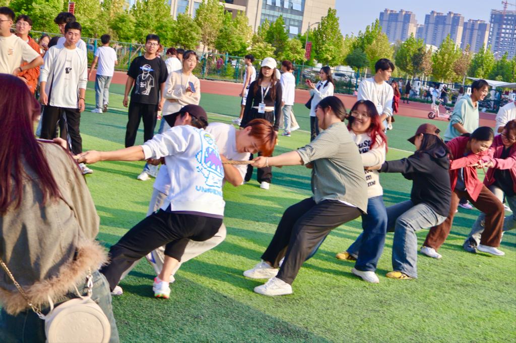 同学们斗志昂扬,热情高涨,在主持人宣布比赛开始之后,随着一声哨响,所有参赛队员紧握长绳,开启了一场关于力量和团结力的比赛,周围的观赛同学激情澎湃,助威的呐喊声震耳欲聋。在比赛中即便处于劣势大家也没有气馁,统一口号转变比赛策略来扭转颓势,被淘汰的队伍也依然充满激情。同学们踊跃参与比赛也展现了青春的活力和热情。