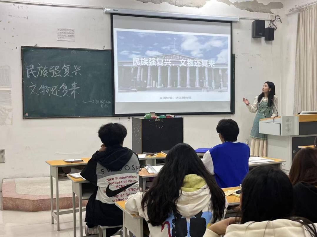 本次活动以认识现存于大英博物馆的中国文物为切入点,详细介绍流失在海外文物的经历。活动由心理委员张越越主持,她用热播网络短剧《逃出大英博物馆》来向同学们展示年轻人对流失海外文物的看法。班长闫子木用PPT一一介绍现存大英博物馆的中国文物,他介绍道:在大英博物馆里有约2.3万件来自中国的文物,其中约2000件长期展示。从商周的青铜器,到唐宋的瓷器、明清的金玉制品,很多文物都是绝世珍藏,例如河北行唐县清凉寺壁画、乾隆皇帝“挚爱”的东晋顾恺之《女史箴图》的唐代摹本、西周的康侯簋、唐代的殉葬三彩等。此外还有敦煌的壁画以及上万件敦煌经书书稿。每一件都是精美绝伦,稀世之宝。而造成这一切的原因是孱弱的封建王朝。