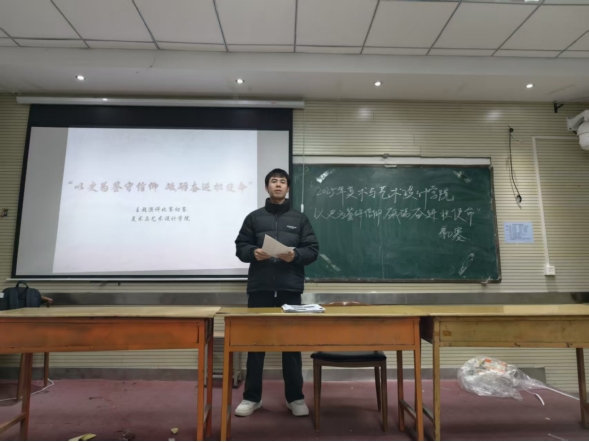 为深入学习贯彻党的二十届四中全会精神,纪念中国人民抗日战争暨世界反法西斯战争胜利80周年,近日,美术与艺术设计学院主办的“以史为鉴守信仰,砥砺奋进担使命”演讲比赛在敏行楼201顺利开展,由全体学生参加。