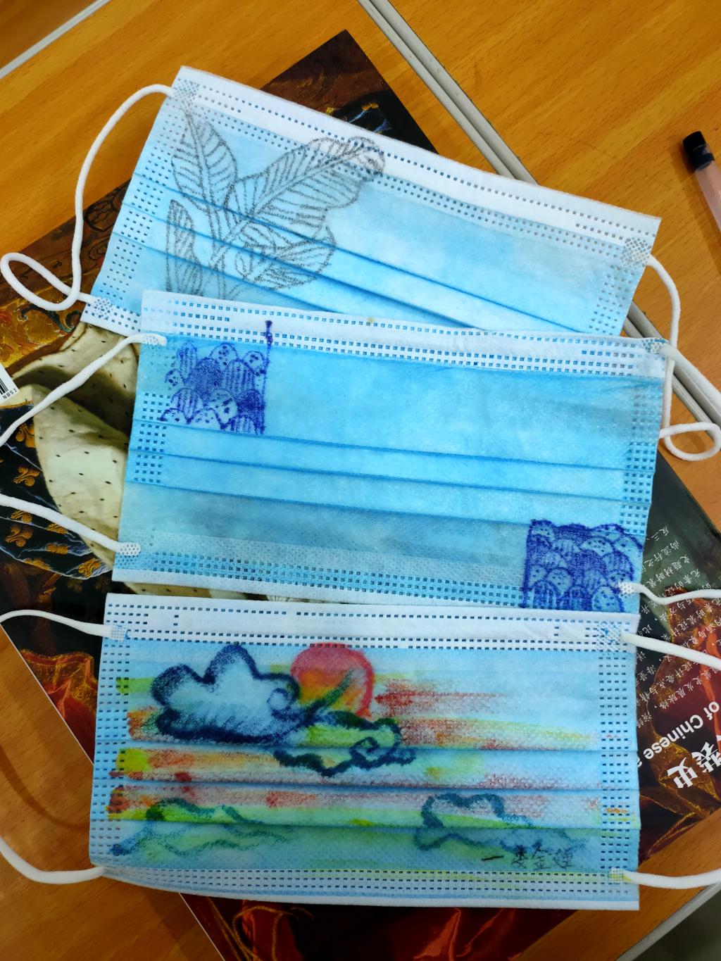 封校已结束,但我们不应放弃佩戴口罩。同时为了改变观单一的口罩样式,我班举行了口罩创意大赛。在口罩上进行绘画创意,同学们积极响应,诞生了许多优秀的创意口罩。参赛作品创意独到,绘画内容新颖,美观,想象独特,前沿。充分发挥了服装设计师对时尚敏锐的直觉,积极顺应时代潮流。更加展示了我班同学对疫情的重视,对自我防护的重视。