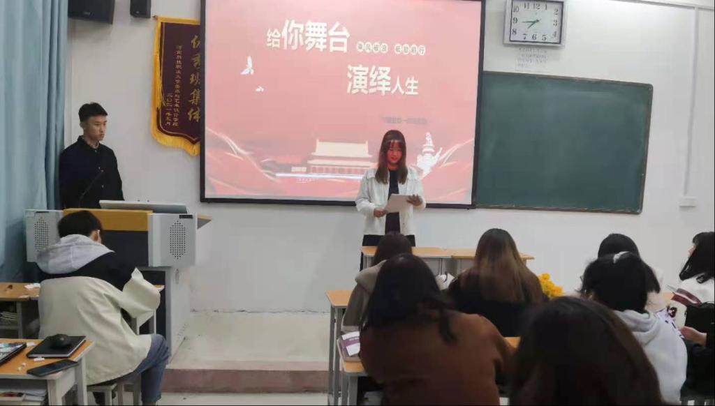2021年4月7日,20级数媒专科一班全体同学于敏行楼503举行了“给我一个舞台,给你一段精彩”演讲比赛。本次活动目的提升同学们对演讲的兴趣,提高同学们的演讲能力,丰富校园文化生活,彰显我班新时代大学生的风采。