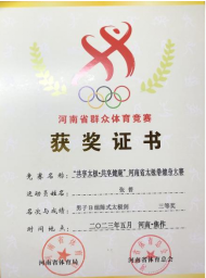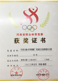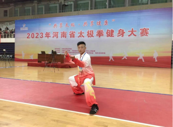 2023年5月9日至5月10日,由河南省体育局主办的“共享太极 共享健康”河南省太极拳健身大赛在焦作市体育中心体育馆顺利举行,来自我院的22级环艺专科一班的张普参加此次比赛。