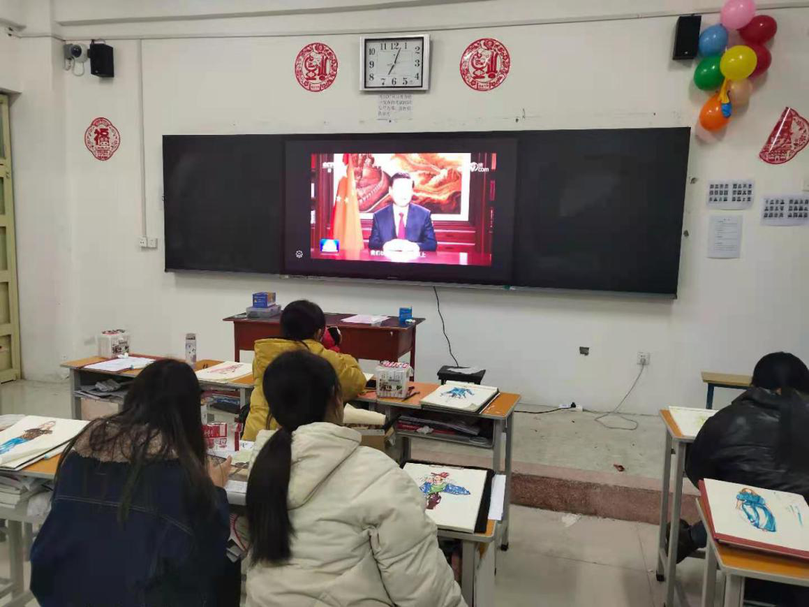 时当元旦,服装本科二班在敏行楼609教室集体观看了习近平主席的新年贺词。