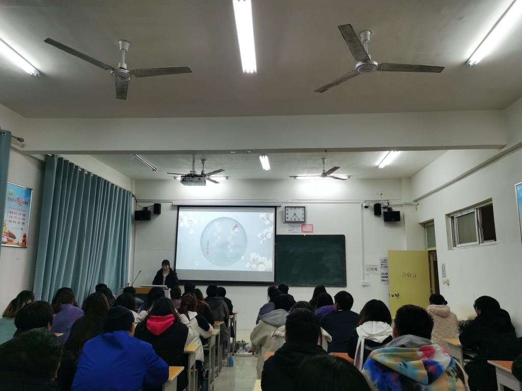 主持人通过一系列关于文化自信的视频让同学们了解到文化自信是当今社会最根本的自信,也是社会主义现代化建设中不可缺少的强大精神支撑。作为新时代的大学生,更应该坚持文化自信,发扬高校文化传承创新的重要职能,做忠实的爱国者、文明礼仪的践行者和中华优秀文化的传播者,之后又以PPT的形式向学生讲解怎样提升学生的人文素养和礼仪规范以及民族自豪感和文化自信心。