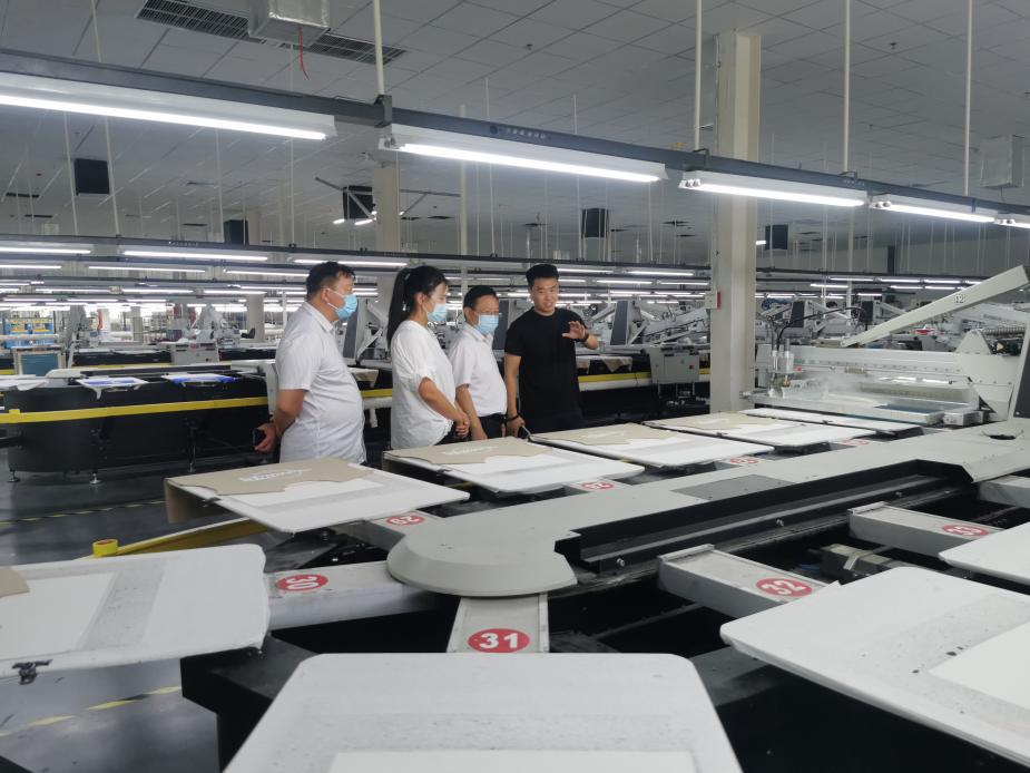 公司人事部经理李吉发首先带领参观了公司办公区、缝制车间、裁剪车间、整烫质检车间等,介绍了公司目前的规模、主营的业务和招聘的主要方向,并着重介绍了公司智能吊挂系统、智能印花区等。参观结束后,双方围绕深化校企合作、人才招聘、专业培养、科研合作以及促进毕业生就业等方面开展深入交流。