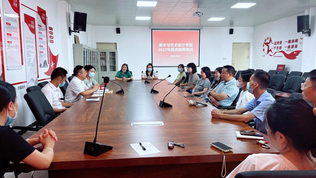 2022年8月1日上午美术与艺术设计学院在实训中心625会议室,召开了新进教师培训会议。