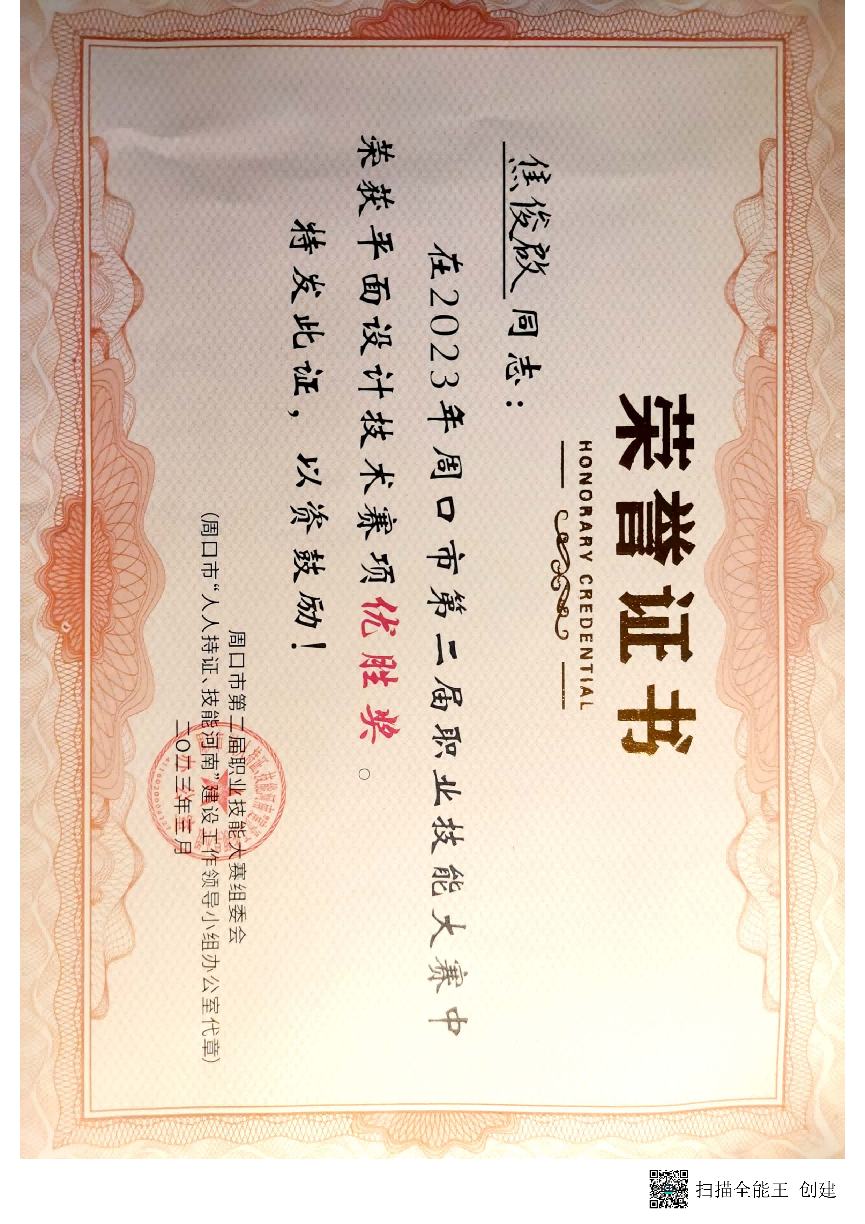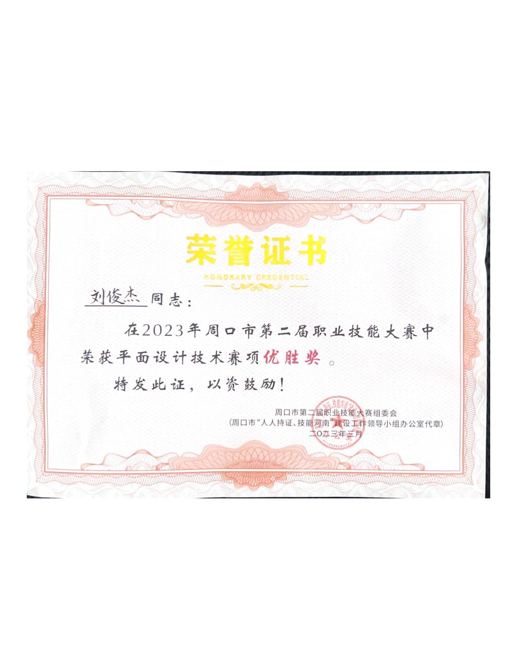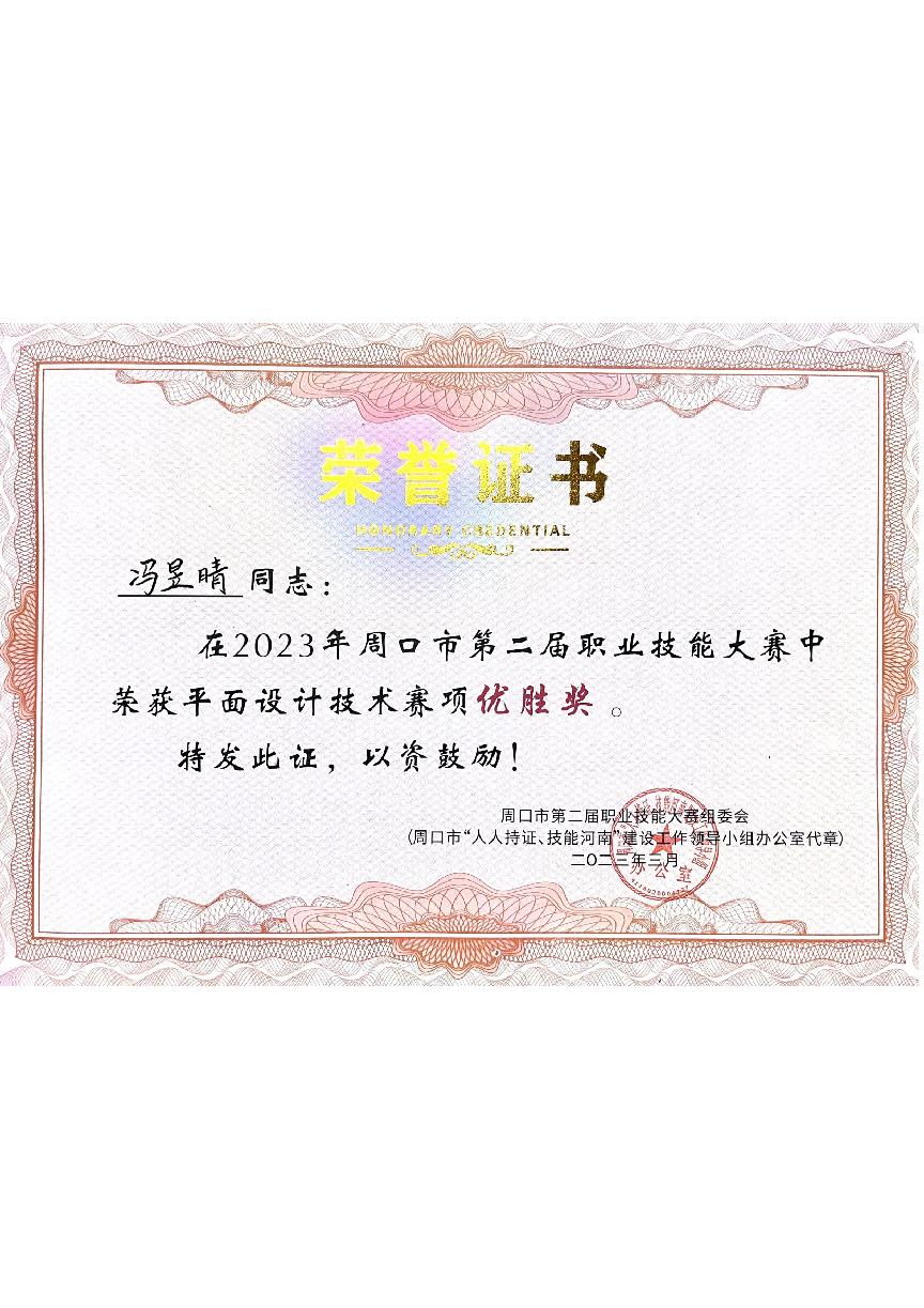 我院学生参加平面设计技术赛项共获三项优胜奖;分别是环境艺术设计专业预备党员焦俊啟、积极分子刘俊杰同学荣获“平面设计技术”赛项荣获优胜奖、数字媒体艺术设计专业积极分子冯昱晴获“平面设计技术”赛项荣获优胜奖。