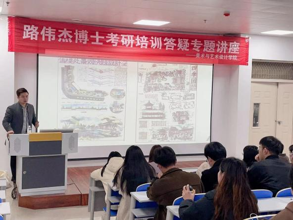 为进一步提高人才培养质量,营造良好的学习氛围,3月27日下午美术与艺术设计学院在综合教学楼732开展考研答疑专题讲座,讲座特邀俄罗斯国立工艺美术大学路伟杰博士主讲。