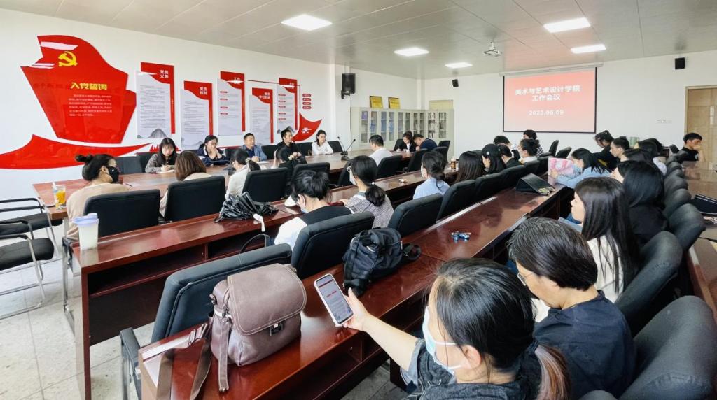 2023年5月9日下午,美术与艺术设计学院在实训中心625室召开学院工作会议,学院院长刘春华、常务副院长张岩岩、副院长刘红魁、副院长李纳纳、副书记李文雅、各教研室主任和全体教师参加本次会议。