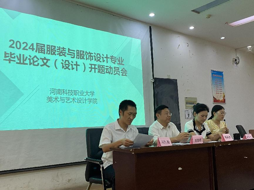 为更好开展2024届毕业生的毕业论文(设计)各项工作,6月13日下午,服装与服饰设计专业召开2024届本科生毕业论文(设计)动员大会。教研室主任魏福红主持会议,美术与艺术设计学院院长刘春华,副院长刘红魁、李纳纳,服装与服饰设计专业全体指导老师和毕业生出席大会。