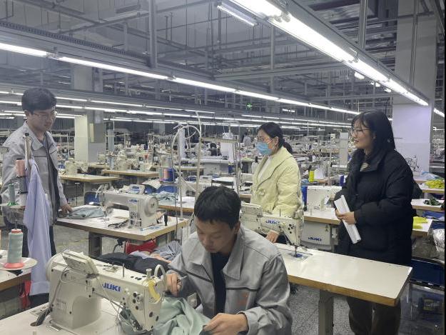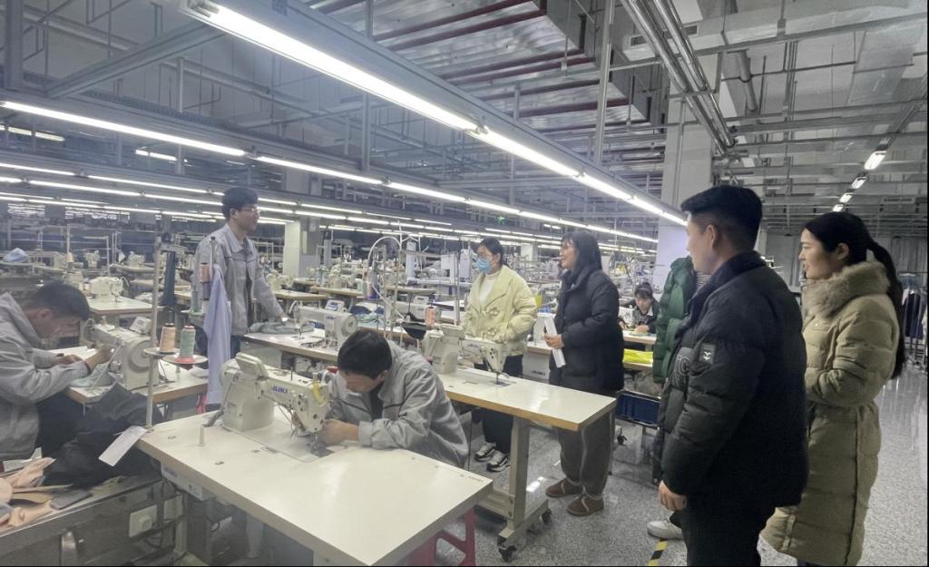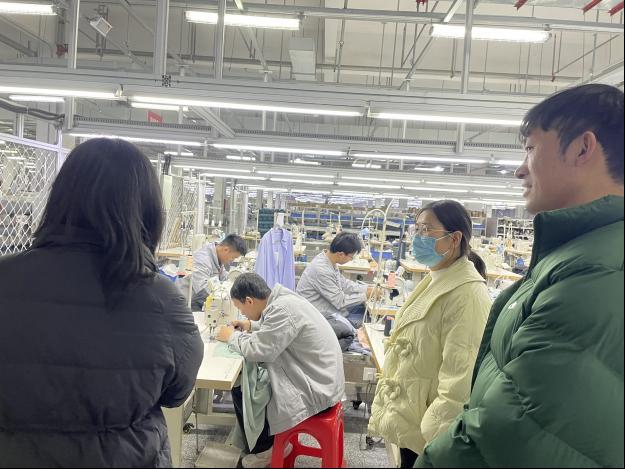 研讨会结束后,行政部负责人钱娟娟,人力资源部主管康曙光带领调研组参观了公司办公区、缝制车间、裁剪车间、整烫质检车间等。