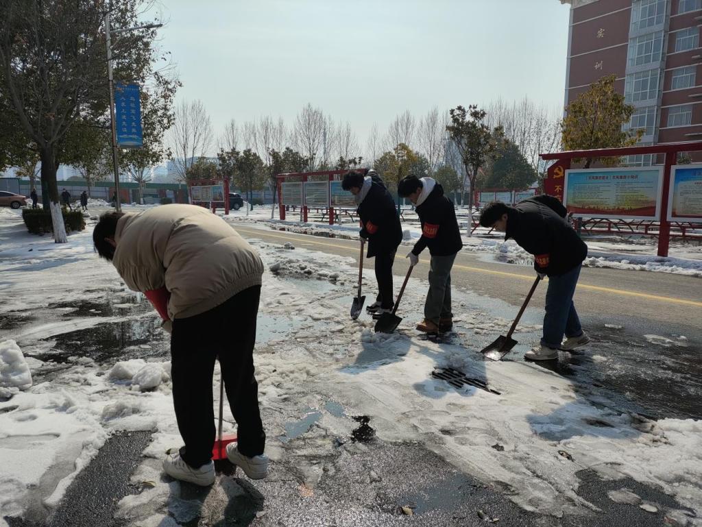 活动期间,青年志愿者们带着雪铲、铁锹、扫帚等工具进行清扫积雪。清雪除冰过程中,大家不畏严寒,积极主动、相互配合、齐心协力,挥舞着雪铲和扫帚,你铲我扫,配合默契,一点点将积雪和冰层铲起集中堆放,积雪全部清扫干净。解决了道路积雪给师生的出行带来的不便。同时此次扫雪行动发扬了“奉献、友爱、互助、进步”的志愿服务精神,为学校师生创造出一个安全的出行环境,用实际行动诠释为人民服务的初心。