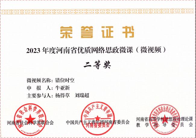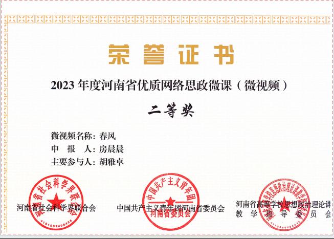 近期,省社科联、省高等学校思想政治理论课教学指导委员会组织专家评委会对2023年度河南省优质网络思政微课(微视频)进行了评审并公示了结果。我院师生积极参赛并取得优异成绩。