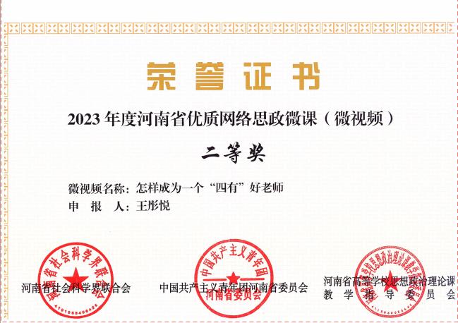 在思政微课赛项中,王彤悦老师的作品《怎样成为一个“四有”好老师》荣获二等奖。在大学生主题微视频奖项中,由我院教师指导的两个学生作品均荣获二等奖。
