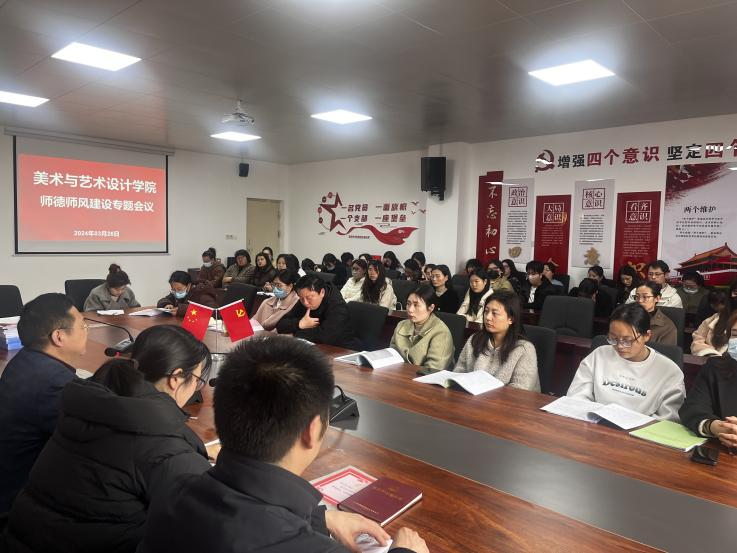 根据学校师德师风学习工作安排及要求,2024年3月26日,美术与艺术设计学院组织全体教职工在实训中心625召开了师德师风建设专题学习会议。