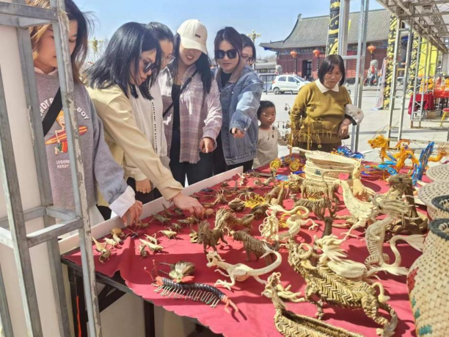 数字媒体艺术设计教研室教师队伍,首先在太清宫广场观看了第九届中国鹿邑·河南省非物质文化遗产(传统戏剧)展演,对非遗物质文化有更进一步的认识,对非物质文化文创产品设计具有指导作用。随后,又发现了面塑、糖人制作、剪纸技艺,草藤编织等非遗产品,栩栩如生的各种手工艺品,令各位老师大饱眼福,惊叹不已。