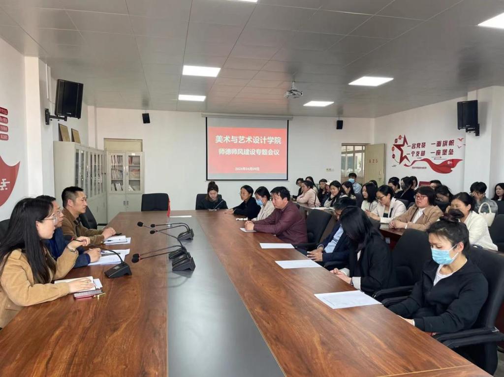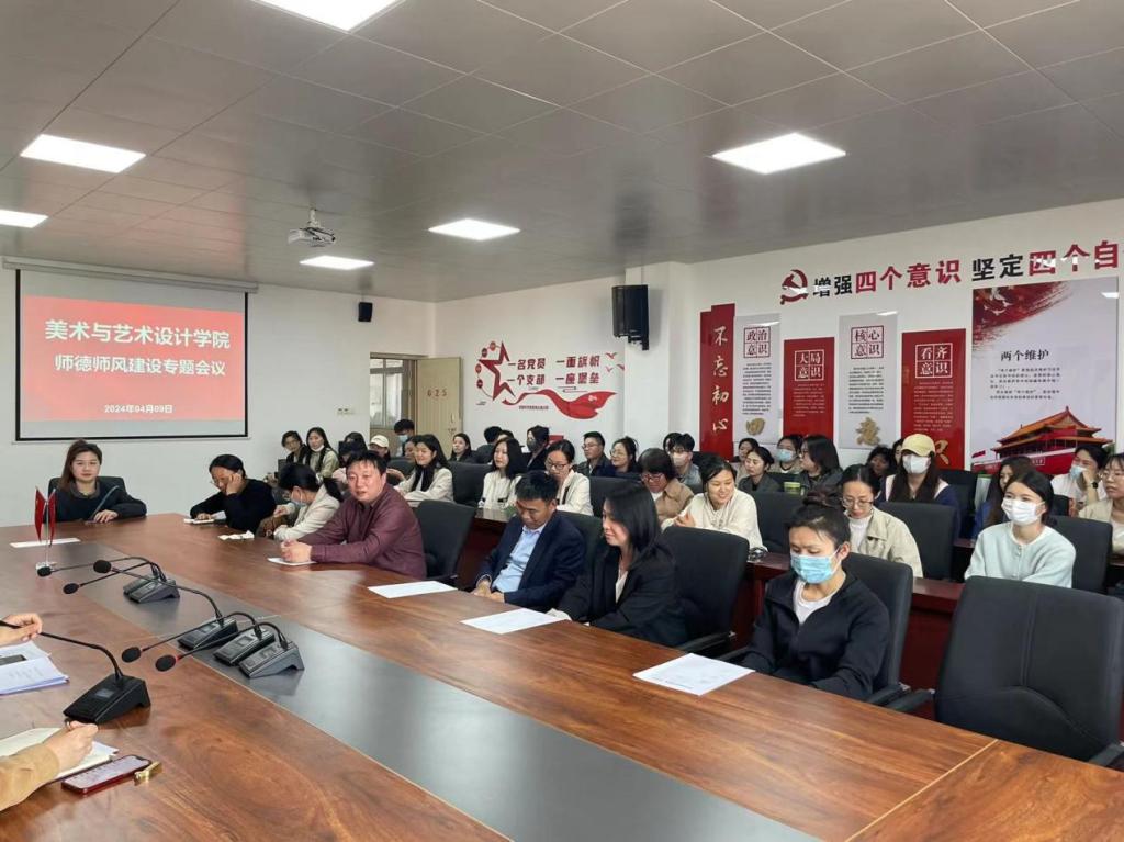 根据学校师德师风学习工作安排及要求,2024年4月9日,美术与艺术设计学院组织全体教职工在实训中心625开展了本学期第五期师德师风建设专题学习会议。学院党委书记刘春华、副院长刘红魁、副书记李文雅、教职工党支部书记汪训及学院全体教职工参会。会议由刘春华同志主持。