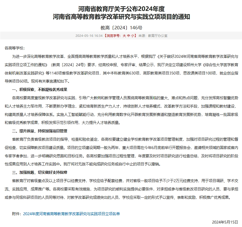 近日,河南省教育厅公布了2024年度河南省高等教育教学改革研究与实践项目立项结果,我院教师陈慧主持申报的《大思政育人视域下“岗+课+研+赛”四位一体的<服装人因工程学>课程思政体系构建与实施》喜获教改项目立项。