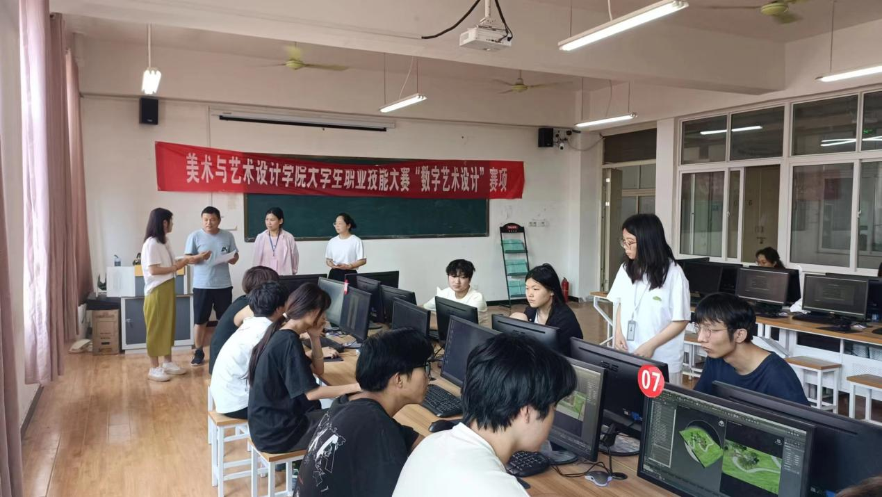 5月28日上午,“数字艺术设计”职业技能大赛决赛在美术与艺术设计学院实训中心617举行,数字媒体艺术设计专业教研室主任魏亚敏,专业教师刘凡、理慧、刘简简现场评选,数字媒体艺术设计专业学生参加了本次比赛。