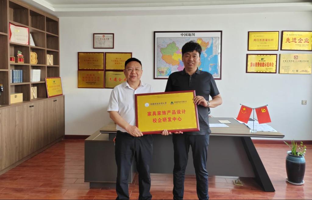 5月29日,院长刘春华,副院长刘红魁,教研室主任郭俊梅一行前往河南森罗家居有限公司举行共建家具家饰产品设计研发中心签约暨揭牌仪式。