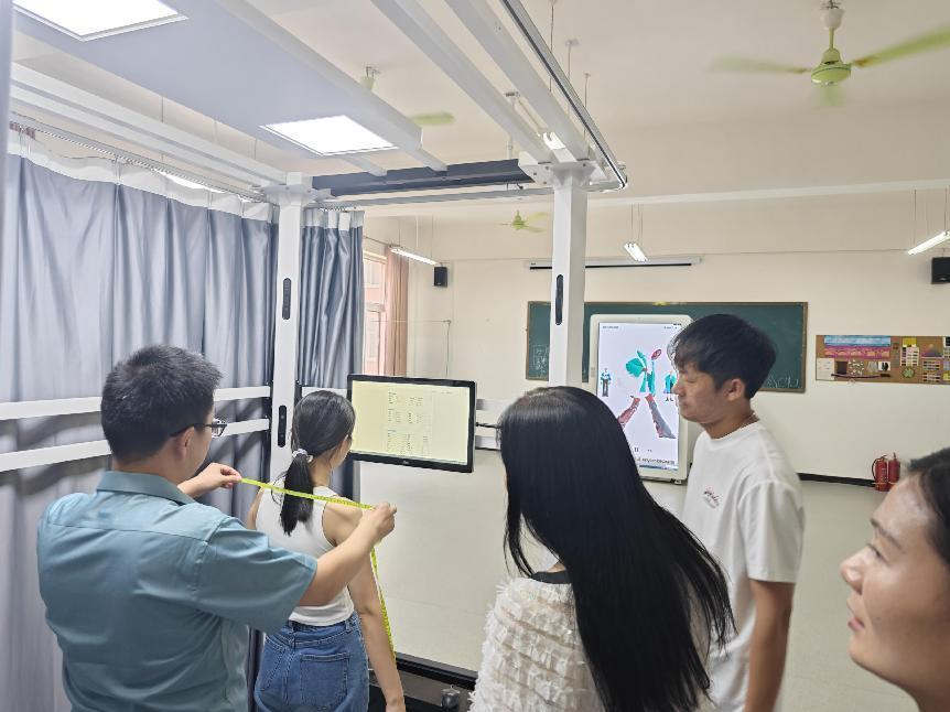 本次培训项目主要包括三维人体扫描仪、3D面料高清扫描系统、面料属性测量系统、智能虚拟3D体感试衣镜、数字化三维设计试衣软件、服装陈列设计1+X虚拟仿真实训软件等,培训邀请了服装设备技术人员对新设备的安装、操作与维护进行讲解和示范。