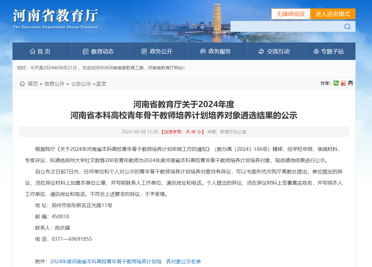 2024年度河南省本科高校青年骨干教师培养计划的遴选结果,经过严格评审,