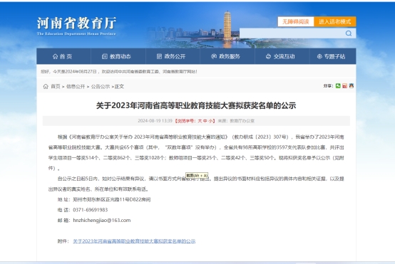 喜报!我院师生在河南省高等职业教育技能大赛获奖5项