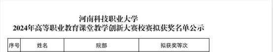 近日,学校发布了《2024年高等职业教育课堂教学创新大赛校赛拟获奖名单公示》,我院共推荐5名教师参加比赛,其中获二等奖3名,获奖教师分别为刘宝宝、许春杰、谢琼琼;获三等奖2名,获奖教师分别为高含颖、陈慧。