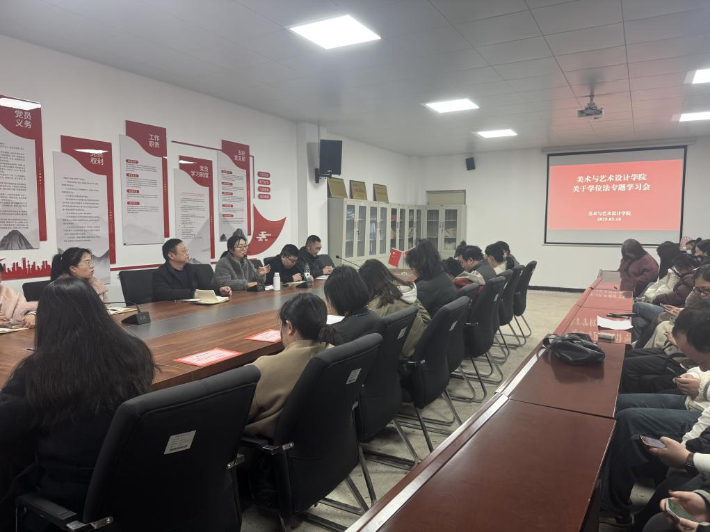 2月18日,为贯彻落实教育部和河南省教育厅关于学习《中华人民共和国学位法》的相关指示和会议精神,美术与艺术设计学院在实训中心625召开《中华人民共和国学位法》集中学习会议。院长刘春华出席会议,院领导班子全体成员,全体教师参加会议。会议由副院长刘红魁主持。