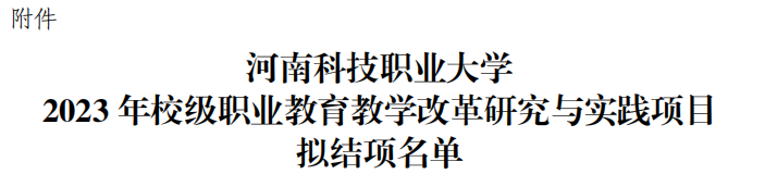 近日河南科技职业大学教务处公布2023年校级职业教育教学改革研究与实践项目拟结项名单。美术与艺术设计学院共有十一项项目结项,其中重点项目5项,分别为刘红魁、张坤杰、陈晓丽、孔伊凡、陈晓风等教师;一般项目6项,分别为郭俊梅、刘爽、杨智慧、侯佳富、石艳艳、许春杰等教师。