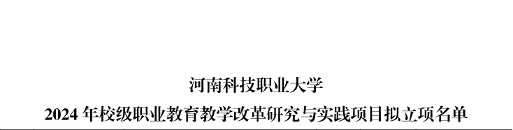 近日,河南科技职业大学教务处公布2024年校级职业教育教学改革研究与实践项目拟立项名单。美术与艺术设计学院共有十二项项目立项,其中重点项目3项,分别为刘红魁、魏亚敏、许春杰等教师;一般项目9项,分别为韩方静、张迪、王彤悦、康萌萌、侯佳富、王淇、刘宝宝、张莉、周虹旭等教师。