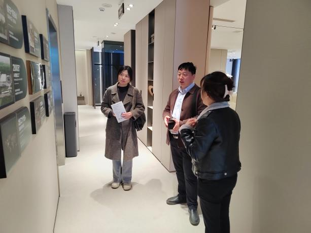 在筑美空间负责人的带领下,汪训一行参观了企业的设计工作室、项目展示区等,深入了解企业的运营模式、业务范围和设计流程。在项目展示区,一系列的设计案例吸引了大家的目光,负责人详细介绍了每个项目从创意构思到落地实施的全过程,行业前沿的设计趋势和市场需求有了更直观的认识。