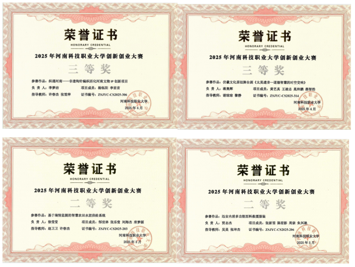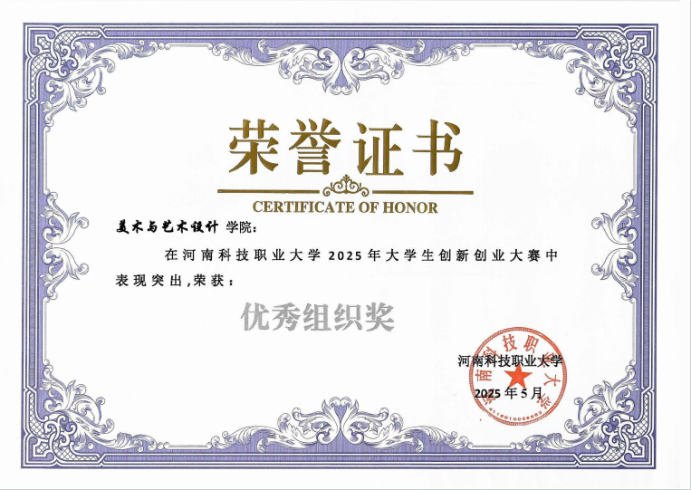 近日,河南科技职业大学2025年大学生创新创业大赛圆满落幕。美术与艺术设计学院在此次大赛中表现优异,凭借出色的组织能力和学生团队的卓越创意,一举夺得“优秀组织单位”称号,并揽获一等奖2项、二等奖3项、三等奖5项,展现了学院在创新创业教育领域的深厚实力与蓬勃活力。
