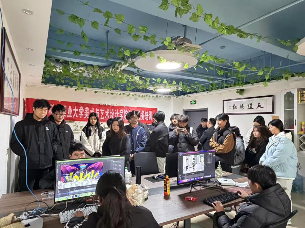 为深化产教融合、拓宽学生就业渠道,落实访企拓岗促就业专项行动要求,2025年12月9日,美术与艺术设计学院组织24级数字媒体艺术设计专业学生,在张岩岩、陈婉媚、吴衡、许春杰四位教师的带领下,赴星界文化传媒公司开展参观学习活动,搭建校企协同育人新桥梁。