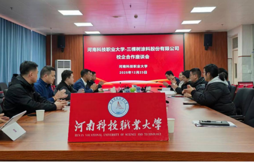 为深化产教融合、促进校企资源共享,推动人才培养与行业需求精准对接,12月23日下午,美术与艺术设计学院与三棵树涂料股份有限公司校企合作座谈会在学校顺利举行,河南科技职业大学招生就业处张冬梅处长,美术与艺术设计学院副院长王振东、副教授张岩岩、副教授吴衡出席会议,三棵树涂料股份有限公司河南大区总经理刘亮亮率队参会。